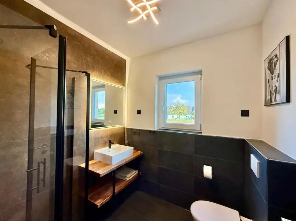 It's a wonderful place, totally new and stylishly furnished, really exceptionally modern. You can take beautiful walks in the forest and the surrounding area. If you want to live in a modern way and want to relax, you will find good accommodation there.